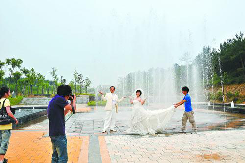 對(duì)許多人而言,墓地是忌諱之地,但21日的武漢黃陂長(zhǎng)樂(lè)園陵園卻迎來(lái)了兩對(duì)“80后”新人,他們以陵園里的綠陰湖畔、噴泉長(zhǎng)廊為背景,定格一個(gè)個(gè)甜蜜的瞬間。