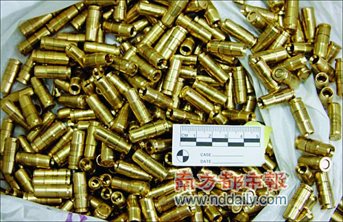 “制造子彈的四個人是五金廠的模具師,他們有制作的技術,只要有圖紙,很容易就能造出來!标愖优式榻B,嫌犯還從廣西弄來黑色火藥,裝上去就可以射擊,威力很大,“只比真子彈稍微差一點而已!