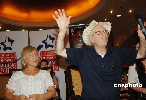 7月20日,2009北京世界魔術(shù)大會(huì)召開發(fā)布會(huì),宣布開幕式晚會(huì)預(yù)演將于7月21日至23日在北京保利劇院拉開帷幕。9位在國(guó)內(nèi)外獲得金獎(jiǎng)的魔術(shù)師將亮相本次晚會(huì),獲得中國(guó)雜技“金菊獎(jiǎng)”金獎(jiǎng)的農(nóng)民魔術(shù)師汪奇魔、“金菊獎(jiǎng)”全國(guó)魔術(shù)比賽金獎(jiǎng)獲得者傅琰東、曾獲“寶豐杯”全國(guó)魔術(shù)金獎(jiǎng)的戚原睿、首次展示“水里變魔術(shù)”的鄔鵬程將同臺(tái)表演。圖為將于本次大會(huì)獻(xiàn)藝的西班牙著名魔術(shù)師胡安(右)暢談“魔幻奧秘”。中新社發(fā) 李學(xué)仕 攝