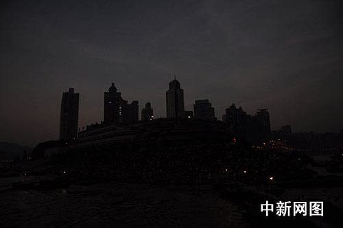 9時(shí)12分左右,食既開始,日全食進(jìn)入全食階段。記者在重慶朝天門碼頭看到,約1分鐘時(shí)間白晝迅速變成黑夜,路上行駛的汽車紛紛打開車燈減緩車速,廣場上的路燈也逐次亮起。