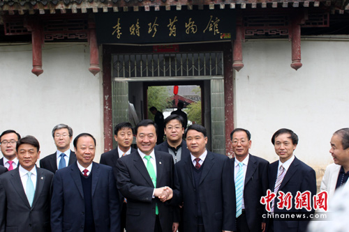 4月26日,經(jīng)過(guò)韓國(guó)明星張娜拉牽線搭橋,韓國(guó)堤川市市長(zhǎng)嚴(yán)泰永一行15人赴中國(guó)“醫(yī)圣”李時(shí)珍故里——湖北蘄春縣參觀訪問(wèn)。韓國(guó)堤川市代表團(tuán)參訪了蘄春縣的李時(shí)珍國(guó)際健康文化旅游區(qū)、李時(shí)珍紀(jì)念館、李時(shí)珍國(guó)際醫(yī)藥港、李時(shí)珍醫(yī)藥集團(tuán)等景區(qū)、企業(yè)。