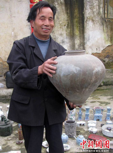 中新網(wǎng)重慶6月17日電 (劉發(fā)生) 重慶秀山土家族苗族自治縣農(nóng)民趙家財(cái)對收藏幾近癡迷,22年間,他幾乎傾盡自己所有財(cái)產(chǎn)從民間收購了近200件藏品。