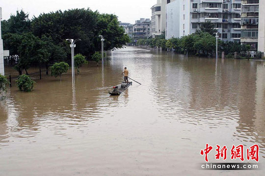 6月17日,廣西桂林,漓江邊上的農(nóng)田已成澤國。當(dāng)天,廣西桂林市出現(xiàn)大到暴雨、局部大暴雨天氣。桂林市及周邊的臨桂、永福等縣均發(fā)布暴雨紅色預(yù)警信號(hào)。受此影響,漓江水位迅速上漲,17日10時(shí)39分,市區(qū)段漓江水位達(dá)146米,超警戒水位0.3米。