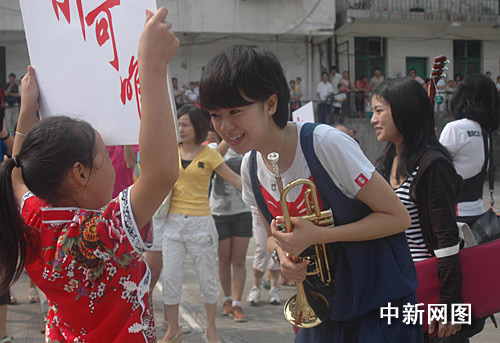 8月24日,2009年“快樂(lè)女聲”四強(qiáng)來(lái)到張家界武陵源天子山蘇州希望小學(xué)舉行牽手希望工程公益活動(dòng)。此次公益之行,四位“快女”不僅向?qū)W校贈(zèng)送了一批音樂(lè)設(shè)備,走進(jìn)校舍和學(xué)生們開(kāi)展交流互動(dòng)活動(dòng),同時(shí)還專程到4名貧困學(xué)生家庭走訪慰問(wèn)。王傳殊 吳勇兵 攝