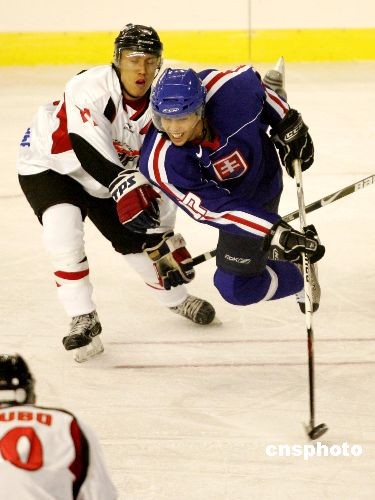 2月19日晚,第24屆世界大學生冬季運動會男子冰球比賽在哈爾濱體育學院冰球館繼續(xù)進行,斯洛伐克最終以4比1完勝日本。中新社發(fā) 富田 攝