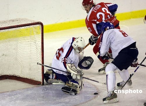 2月25日晚最后一場(chǎng)男子冰球小組賽由俄羅斯對(duì)陣斯洛伐克,整場(chǎng)比賽火爆激烈,最終俄羅斯隊(duì)9:3取勝,保持小組不敗進(jìn)入半決賽。中新社發(fā) 王韶驊 攝