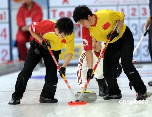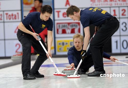 2月26日,大冬會(huì)男子冰壺半決賽在黑龍江省冰上基地冰壺館舉行,中國(guó)隊(duì)7:8惜敗于瑞典隊(duì)。中新社發(fā) 姚庭山 攝