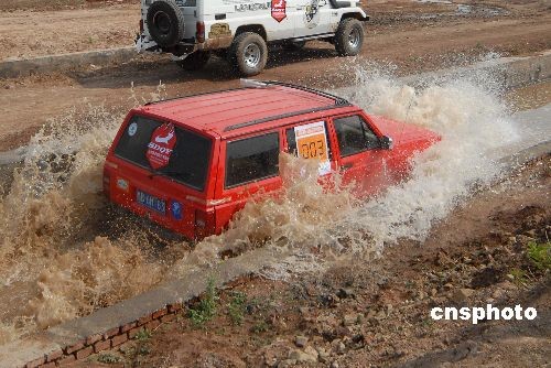 2009年4月29日,“景陽(yáng)春杯”越野車王爭(zhēng)霸賽在發(fā)動(dòng)機(jī)的咆哮聲中拉開帷幕。本次大賽的最大魅力在于極強(qiáng)的觀賞性和參與性,賽手需要通過(guò)越野賽道內(nèi)36組障礙,尤其需要突破場(chǎng)地內(nèi)極具粘性的泥地,是通常項(xiàng)目無(wú)法比擬的!熬瓣(yáng)春杯”越野車王爭(zhēng)霸賽,以宣傳賽事以及山東文化產(chǎn)業(yè)及旅游產(chǎn)業(yè)的繁榮景象為主題,全方位展示汽車文化的獨(dú)有魅力及無(wú)限的發(fā)展空間!熬瓣(yáng)春杯”越野車王爭(zhēng)霸賽,系山東省體育總局主辦, 安丘市人民政府、山東青云國(guó)際旅游度假區(qū)股份有限公司承辦的跨度為五個(gè)月的大型賽事。中新社發(fā) 王曉光 攝