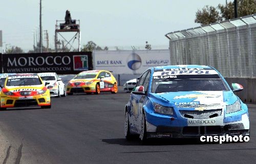 在5月3日進行的2009世界房車錦標賽(WTCC)第三站——摩洛哥馬拉喀什(Marrakech)站中,雪佛蘭車隊展現(xiàn)出非凡的實力。車手羅伯·胡夫(Rob Huff)和尼科拉·拉里尼(Nicola Larini)駕駛的雪佛蘭科魯茲力壓群雄分別贏得了第一和第二回合比賽勝利,從而使雪佛蘭車隊首次包攬兩回合比賽的冠軍,完成了歷史性的突破。圖為尼科拉·拉里尼在比賽中。中新社發(fā) 趙振清 攝