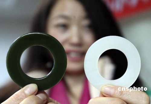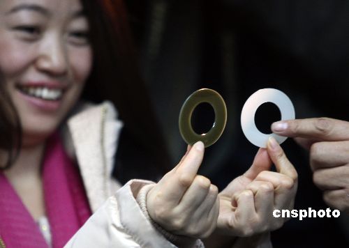 一月二日,北京奧組委和青海省政府正式舉行昆侖玉捐贈(zèng)儀式。昆侖玉將作為2008北京奧運(yùn)會(huì)獎(jiǎng)牌用玉。青海昆侖玉主要成分由“投山石”和“陽(yáng)起石”組成的纖維狀微晶結(jié)合體,有“白玉”、“青玉”、“青白玉”、“黃玉”、“墨玉”等,豐富的色澤便于區(qū)分金、銀、銅獎(jiǎng)牌的等級(jí),是國(guó)際珠寶界目前認(rèn)定的優(yōu)質(zhì)級(jí)別寶玉石種類。中新社發(fā) 任海霞 攝