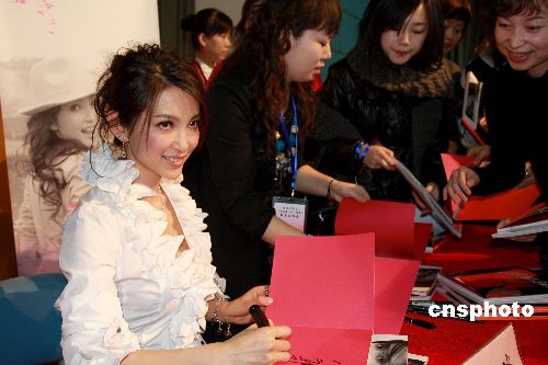 1月7日,李冰冰帶著新書(shū)《李冰冰:十年·映畫(huà)》在北京國(guó)際展覽中心召開(kāi)新聞發(fā)布會(huì),并把新書(shū)獲得的首批版稅捐給了聯(lián)合國(guó)兒童基金會(huì)。現(xiàn)場(chǎng)不少影迷專(zhuān)程從外地飛赴北京趕來(lái)給李冰冰獻(xiàn)花、加油。而為了感謝影迷的支持,李冰冰也在現(xiàn)場(chǎng)為部分讀者簽名贈(zèng)書(shū)。中新社發(fā) 鄭雄增 攝