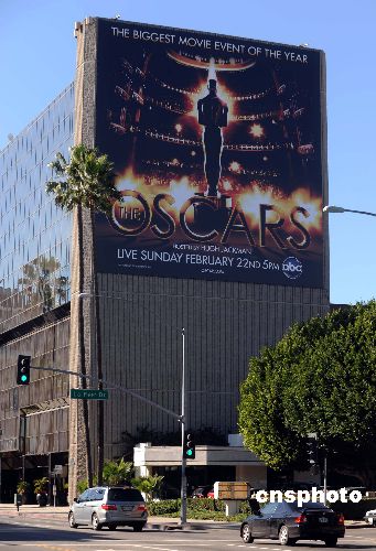 第八十一屆奧斯卡電影金像獎官方海報一月二十九日正式公布,一幅巨型官方海報懸掛在位于好萊塢的美國電影藝術(shù)與科學(xué)學(xué)院大樓外。海報以黑色與金色為基調(diào),以奧斯卡頒獎現(xiàn)場“柯達劇院”的舞臺作為主要背景,“小金人”的剪影在金色光芒的映襯下顯得莊重而大氣。中新社發(fā) 張煒 攝