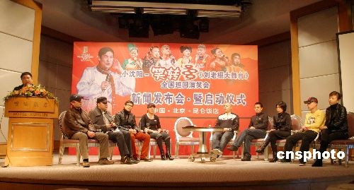 3月7日,“《劉老根大舞臺(tái)》小沈陽笑轉(zhuǎn)2009”全國(guó)巡演演笑會(huì)新聞發(fā)布會(huì)暨啟動(dòng)儀式在北京昆侖飯店舉行。據(jù)了解,“《劉老根大舞臺(tái)》小沈陽笑轉(zhuǎn)2009”全國(guó)巡演演笑會(huì)自3月6日開始,全國(guó)巡回演出,共106場(chǎng),主要演員全部是趙家班,小沈陽表示如沒有特殊情況,將參加全部演出。中新社發(fā) 龔輝 攝