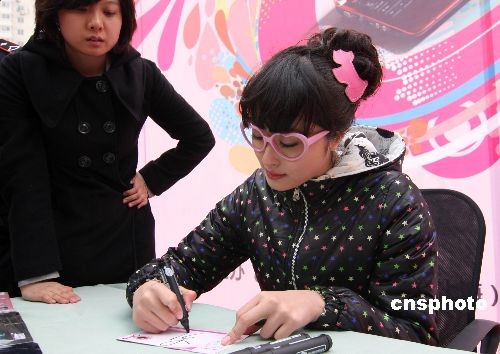 3月8日下午,熱播劇集《丑女無敵》中“林無敵”的扮演著李欣汝出現(xiàn)在青島為某產(chǎn)品宣傳的簽售現(xiàn)場。期間,應(yīng)青島粉絲們的請(qǐng)求李欣汝學(xué)說起了青島方言,逗得全場樂翻天。中新社發(fā) 李東升 攝