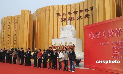 三月二十八日上午,大型史詩電影《黃帝》在河南新鄭黃帝故里舉行啟動(dòng)儀式。該片將以黃帝統(tǒng)一萬國(guó),開創(chuàng)基業(yè),創(chuàng)制律歷,發(fā)明文字,植桑養(yǎng)蠶,研究醫(yī)學(xué)等生平、生活和思想為藍(lán)本,向世人講述黃帝與自然、社會(huì)、人的交往、斗爭(zhēng),進(jìn)而和諧相處的歷程,講述一個(gè)民族英雄的成長(zhǎng)故事,一個(gè)中華始祖不屈不撓與命運(yùn)抗?fàn)幍臍v史。中新社發(fā) 史寶銀 攝