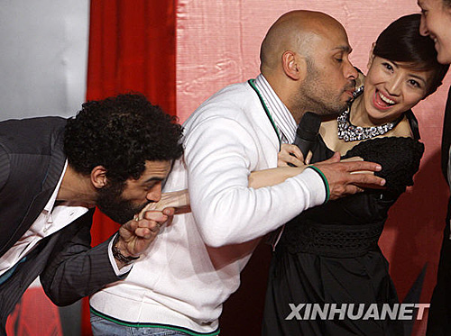 4月9日,法國(guó)電影《孤獨(dú)二兄弟》的導(dǎo)演兼主演、法國(guó)家喻戶(hù)曉的笑星組合朗茲·貝迪亞(左)和埃里克·朱多爾(中)在接受采訪(fǎng)時(shí)逗樂(lè)。當(dāng)日,由中國(guó)國(guó)家廣播電影電視總局、法國(guó)駐華大使館等單位共同主辦的“2009中法文化交流之春暨第六屆法國(guó)電影展映活動(dòng)”在北京開(kāi)幕,該活動(dòng)將向中國(guó)觀(guān)眾展現(xiàn)當(dāng)代法國(guó)藝術(shù)舞臺(tái)的活力和創(chuàng)造力,為中法兩國(guó)藝術(shù)家提供交流的機(jī)會(huì)。邢廣利 攝