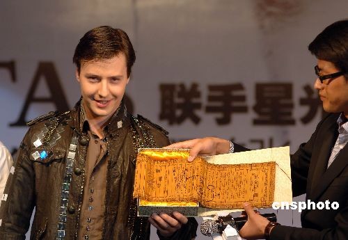 4月22日,俄羅斯著名高音王子維塔斯(VITAS)現(xiàn)身北京,宣布全球第一張中文EP的發(fā)布計劃。這張EP將包含《青藏高原》等新版中文歌曲,并另外包含一首由星光國際旗下著名音樂制作人易家揚、李偲菘、李偉菘為維塔斯量身打造的新作。維塔斯近日加盟星光國際制作的電影《花木蘭》。首度“觸電”,他在片中飾演勇敢的歌者,將與趙薇、陳坤、胡軍等影視巨星有對手戲。中新社發(fā) 李學仕 攝