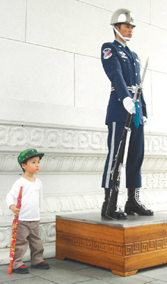 以后如果在“中山紀(jì)念館”、忠烈祠或慈湖看到衛(wèi)兵旁邊站著一個(gè)小朋友,有模有樣地耍槍,那可能就是小小禮兵Ryan。