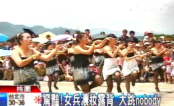 中新網(wǎng)7月10日電 據(jù)臺(tái)灣TVBS報(bào)道,臺(tái)灣陸軍桃園空旗旅營(yíng)區(qū)10日開放,除了直升機(jī)秀和儀隊(duì)操槍表演之外,營(yíng)區(qū)20位女軍官特別化起濃妝,穿上高跟鞋和露背裝,大跳苦練一個(gè)月的“NOBODY”。她們笑說,沒想到跳舞比操戰(zhàn)技還要累。