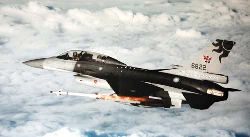 中新網(wǎng)8月5日電 據(jù)臺灣《聯(lián)合報》報道,臺灣空軍花蓮基地兩架F16戰(zhàn)機日前演習(xí)射擊魚叉飛彈。