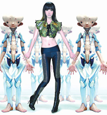 曾為LV設(shè)計(jì)暢銷包款的村上隆,這次與時尚雜志跨界合作,蔡依林拍攝封面時悠游于村上隆的“立體球”、“迷彩風(fēng)”與“未來機(jī)器人”作品,宛如現(xiàn)代版走進(jìn)奇幻世界的艾麗斯,視覺效果非常出色。