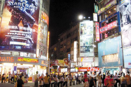 悶熱的空氣并沒(méi)有把我推向極限,我享受著,這里的空氣,這里的街燈,這里的行人,這里的游覽大巴,這里的小綿羊,這里垃圾車的音樂(lè)……也許很多人都覺(jué)得我瘋了,不就是城市么?城市不就長(zhǎng)那個(gè)樣子,臺(tái)北和廣州有差別嗎?的確,城市都是用鋼筋水泥拼拼湊湊出來(lái)的藝術(shù)品,但臺(tái)北市卻有獨(dú)特的魅力吸引著我。