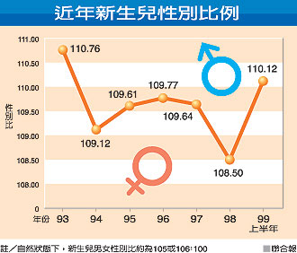 中新網(wǎng)8月30日電 據(jù)臺灣《聯(lián)合報(bào)》報(bào)道,臺灣人口結(jié)構(gòu)再惡化。2010年上半年出生率創(chuàng)歷年新低,新生兒性別失衡更急遽惡化,男女嬰幼兒比例為110:100,為近6年來最嚴(yán)重。此外,有婦產(chǎn)科學(xué)者指出,產(chǎn)婦在“傳宗接代”的壓下力,透過母血篩檢等手法,只為“求得一子”。