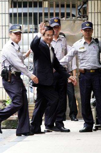 陳水扁因扁家四大案被控貪污、洗錢,6月11日二審被判刑20年。全案上訴“最高法院”后,原高院承審合議庭受“最高法院”囑托開移審庭,7月裁定羈押扁3個月。在10月18日羈押期滿前,合議庭再次開庭,以決定是否再延押2個月。