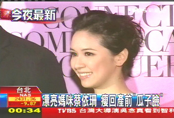 中新網(wǎng)10月15日電 據(jù)臺灣TVBS報(bào)道,14日晚間,臺灣一項(xiàng)乳癌防治公益活動吸引不少漂亮媽咪站臺,正在準(zhǔn)備演唱會的歌手張清芳,以及為連家生下第二個寶寶的蔡依珊,都是亮麗現(xiàn)身。蔡依珊一出現(xiàn),鎂光燈閃個不亮,因?yàn)椴?星期時間,很明顯的又瘦了一圈。