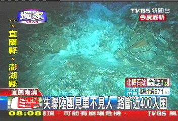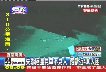 中新網(wǎng)10月22日電 據(jù)臺(tái)灣TVBS報(bào)道,宜蘭大淹水,蘇花公路更是處處坍方,甚至傳出有大陸游客團(tuán)的游覽車(chē)受困。該媒體記者挺進(jìn)現(xiàn)場(chǎng),只看到游覽車(chē)空車(chē),人員不知去向,不知是否平安;臺(tái)九線大約115公里處,部分路段的路基完全被淘空,土石滑落一兩百米的山下,附近路面更變成小溪、不斷淹水。