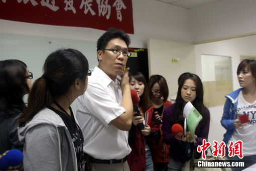 記者22日晨來到位于臺北市萬華區(qū)的承擔此次游線的創(chuàng)意旅行社。據(jù)證實,自昨天下午起,就一直無法與該團隊(包括司機、導游和領(lǐng)隊)的任何一個人取得聯(lián)系。圖為該旅行社董事長、臺北市旅行商業(yè)同業(yè)公會理事李奇岳向媒體介紹相關(guān)情況。