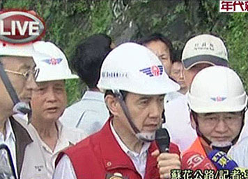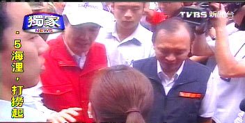 臺灣“鲇魚”帶來豪雨重創(chuàng)宜蘭,當?shù)鼐用駷暮竺χ謇砑覉@,馬英九及臺“行政院長”吳敦義23日前去勘災,因車隊動用警力以及交通管制,引發(fā)一些民眾不滿。