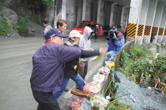 3日是事件發(fā)生后的“二七”,創(chuàng)意旅行團司機郭銘麟兒子郭翔、導游曾慶華等家屬帶著鮮花、冥紙,原本要到蘇花公路114.5公里處祭拜,但是搭乘的車輛行駛過112.8公里處,突然有落石掉落,相當危險,決定改在112.8公里祈福,難掩悲傷情緒。