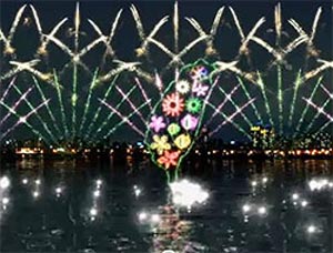 11萬發(fā)煙火中尤以大稻埕煙火將施放的“臺(tái)灣百花圖”難度最高,施放過程中,臺(tái)灣圖樣于水中慢慢站立的意象表現(xiàn),堪稱是世界獨(dú)一無二的臺(tái)灣煙火景觀;此外,也將有2250顆連續(xù)施放、在空中持續(xù)燃燒達(dá)40秒的“紅燈籠煙火”,及代表世界五大洲“心連心”的特殊高空煙火,“彩花瀑布”等精彩絕倫的煙火景象。