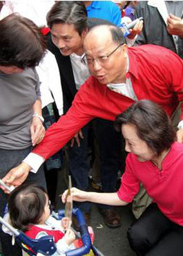 中新網(wǎng)11月11日電 據(jù)“中央社”報(bào)道,國民黨臺(tái)中市長候選人胡志強(qiáng)11日起請(qǐng)假投入選舉,首場(chǎng)活動(dòng)即到臺(tái)中市北屯區(qū)金谷市場(chǎng)拜票,國民黨秘書長金溥聰特別陪同,市場(chǎng)內(nèi)“凍蒜(當(dāng)選)”聲不絕于耳。