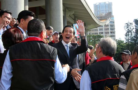 中新網(wǎng)11月12日電 據(jù)“中央社”報道,國民黨主席馬英九今天前往臺北“國父紀念館”向?qū)O中山銅像獻花致敬,紀念孫中山誕辰144周年。儀式結(jié)束后,黨員夾道歡迎馬英九,全場高喊“馬主席加油”。