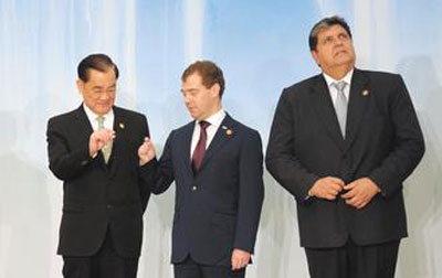 連戰(zhàn)表示,全球金融風(fēng)暴余波蕩漾、保護(hù)主義可能死灰復(fù)燃之際,區(qū)域經(jīng)濟(jì)整合尤其重要;APEC基于過(guò)去21年推動(dòng)自由化的能量及成果,應(yīng)續(xù)扮演整合及溝通平臺(tái)的重要角色。