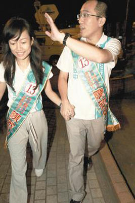 檢方昨天出示陳致中駕車出入“人文首璽”的監(jiān)視錄像帶,指陳致中用黃睿靚手機(jī)打召妓電話。晚上七時二十分,陳致中和黃睿靚結(jié)束掃街行程,回到競選總部,下車步行短短路程中,兩人十指緊扣,陳致中擔(dān)心黃睿靚被SNG車的電纜線絆倒,輕聲頻喊“小心、小心”。