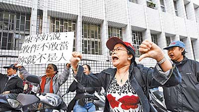 中新網2月11日電 據(jù)臺灣《蘋果日報》報道,涉及機要費弊案、洗錢案、南港展覽館弊案、龍?zhí)顿彽乇装杆拇蠊偎镜膮鞘缯涓袅?87天后再度上法庭應訊。開庭半個小時后,她就直接或間接承認七條起訴罪狀中的偽造文書、泄密、收賄、洗錢四罪,坦承“一切都是我做的”、“我怕‘總統(tǒng)’知道(我收錢)”,庭訊后并首次就丑聞弊案向社會道歉。吳淑珍10日所承認的四罪,最重可被判無期徒刑。