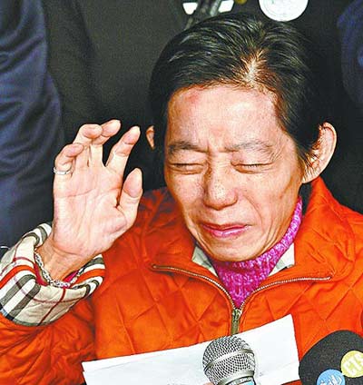 2月10日,臺(tái)北地方法院再次傳喚陳水扁之妻吳淑珍到庭應(yīng)訊,繼續(xù)審理前臺(tái)灣地區(qū)領(lǐng)導(dǎo)人陳水扁家所涉弊案。吳淑珍在連續(xù)17次拒不出庭后,當(dāng)日終于現(xiàn)身,并在兩個(gè)半小時(shí)的庭訊結(jié)束后,發(fā)表簡短“道歉聲明”,表示今后將“隨傳隨到”。圖為吳淑珍庭訊結(jié)束后離開臺(tái)北市地方法院時(shí),媒體圍追。 中新社發(fā) 路梅 攝