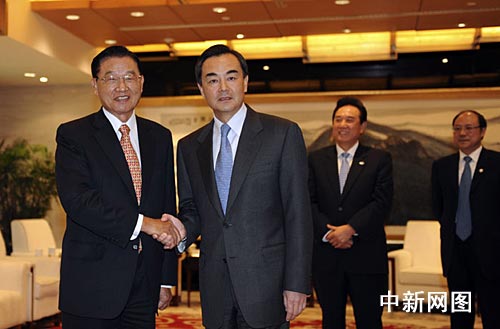 中新網(wǎng)南京4月26日電 (記者 劉舒凌)中共中央臺辦主任王毅今天下午5時許在南京會見;鶗麻L江丙坤率領(lǐng)的協(xié)商代表團(tuán)一行。