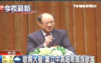 中新網(wǎng)4月19日電 據(jù)臺(tái)灣“中央社”報(bào)道,海峽兩岸關(guān)系協(xié)會(huì)常務(wù)副會(huì)長(zhǎng)鄭立中18日歌興大發(fā),在海峽交流基金會(huì)的晚宴上高唱卑南族(臺(tái)灣少數(shù)民族族群之一)歌謠“我們都是一家人”,還用閩南語(yǔ)祝愿“健康、平安、順利”,舉杯“乎干啦”。