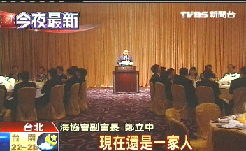 鄭立中晚間也再次談起晚宴提到的“冬季到臺(tái)北來(lái)看雨”這首歌,可惜他不會(huì)唱了。不過(guò)當(dāng)晚的氣氛讓他想唱首歌,歌名就叫“我們都是一家人”,唱完之后他還謝謝大家“在精神上付出的損失”。