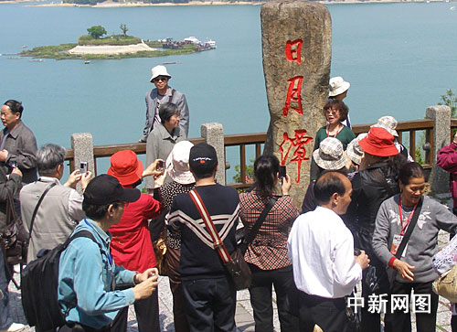 今天的日月潭碧水藍天,波光粼粼,浙江游客泛舟湖上,在湖中小島日月潭碑刻前,游客為拍照留影在烈日下苦等也樂此不疲,一位朱姓游客坦言,家鄉(xiāng)的西子湖和日月潭各有千秋,“日月潭自然美,西子湖人文美,各有各的味道!