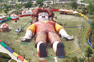 中新網(wǎng)4月2日電 據(jù)臺(tái)灣聯(lián)合報(bào)報(bào)道,臺(tái)中市兒童藝術(shù)節(jié)今晚登場(chǎng),一劇團(tuán)在公園打造長(zhǎng)近60米的“格列佛人體藝術(shù)探索館”,市民站在巨大的“格列佛”身旁,頓時(shí)變成“小人”,好像進(jìn)入童話故事情境,從格列佛的腳底進(jìn)入,能認(rèn)識(shí)人體器官。