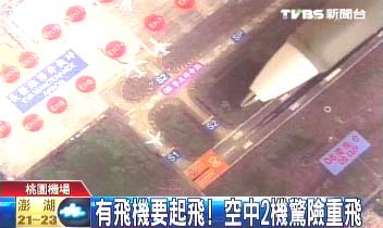 這是去年6月發(fā)生在桃園機場的驚險畫面,原本準備降落的飛機趕快急拉再升空,但沒想到事隔多月,驚險重飛的場景再上演。飛航管制總臺人員:“長榮地上的飛機用中文跟塔臺說,它好像鼻輪已經(jīng)過了等待線,所以塔臺處置,讓天上的飛機重飛!