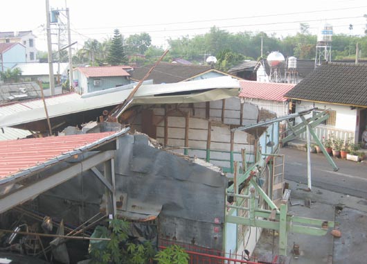 中新網(wǎng)4月21日電 據(jù)臺灣《聯(lián)合報(bào)》報(bào)道,臺南縣白河鎮(zhèn)大林里20日下午疑出現(xiàn)龍卷風(fēng),瞬間強(qiáng)大風(fēng)力,吹毀九戶民宅屋頂,婦人吳郭幼家的鐵皮屋頂整個(gè)被掀開,一百八十度翻轉(zhuǎn)后,再倒蓋在房子上,“全部過程不到一分鐘”,受災(zāi)民眾談起仍難掩驚嚇。