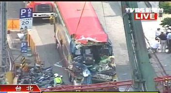 臺北市消防局表示,下午1時54分松高路19號工地發(fā)生起重機吊臂掉落,砸中1輛停在路旁、載著25名大陸游客的游覽車尾端,目前傷者已經(jīng)送醫(yī)急救。