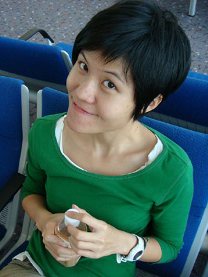 以151676票的票數(shù)獲得網(wǎng)絡(luò)人氣第一名的來自中國臺(tái)灣的王秀毓也跟著其它15人一起行動(dòng),一抵達(dá)當(dāng)?shù),立刻打開計(jì)算機(jī)上網(wǎng)跟朋友分享心情。