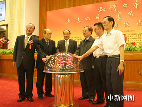 中新網(wǎng)北京6月9日電 (吉翔)為慶祝中華人民共和國成立60周年,進一步推動海峽兩岸文化交流與合作,“和諧中華·海峽兩岸書畫藝術(shù)家交流活動”9日中午在北京人民大會堂啟動。